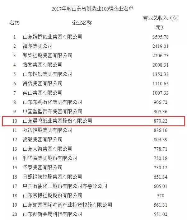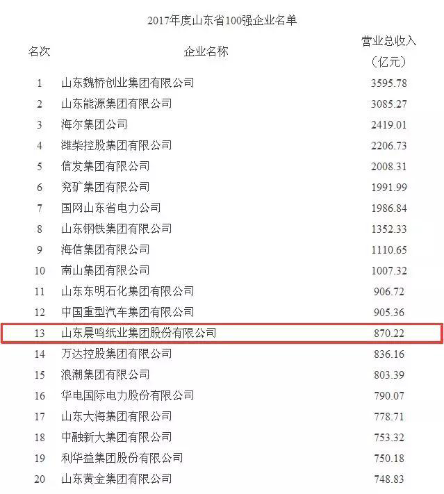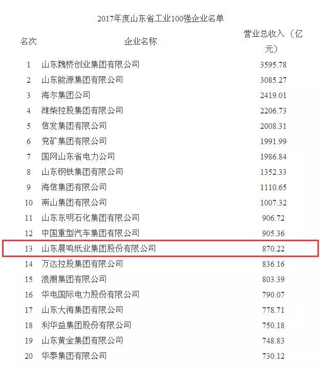 日前我省公布了2017年度山東省100強企業(yè),晨鳴集團位列第13位,較上年提升1位,繼續(xù)位居行業(yè)榜首。同時公布的還有2017年度山東省工業(yè)100強企業(yè)、山東省制造業(yè)100強企業(yè)榜單,晨鳴集團分列榜單的第13位和第10位,與上年持平。
